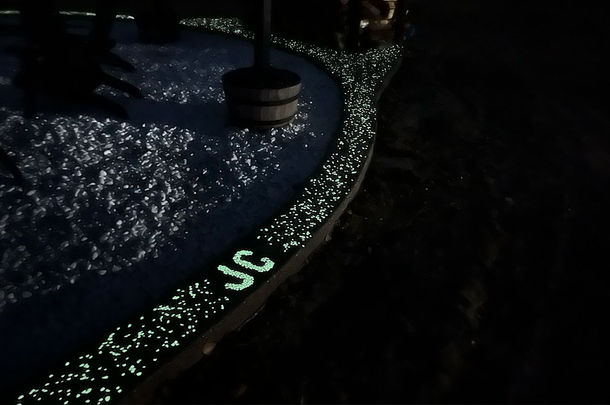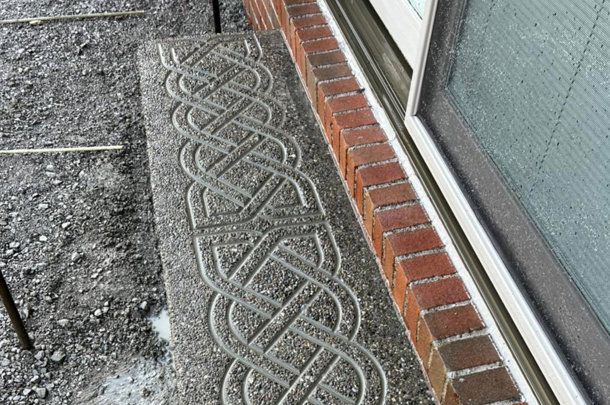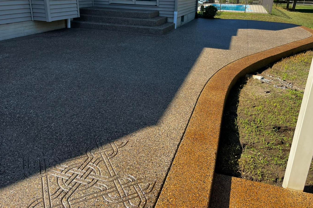 Regular white concrete doesn’t have to be plain. We add borders to all our concrete and can make customized designs for you.
